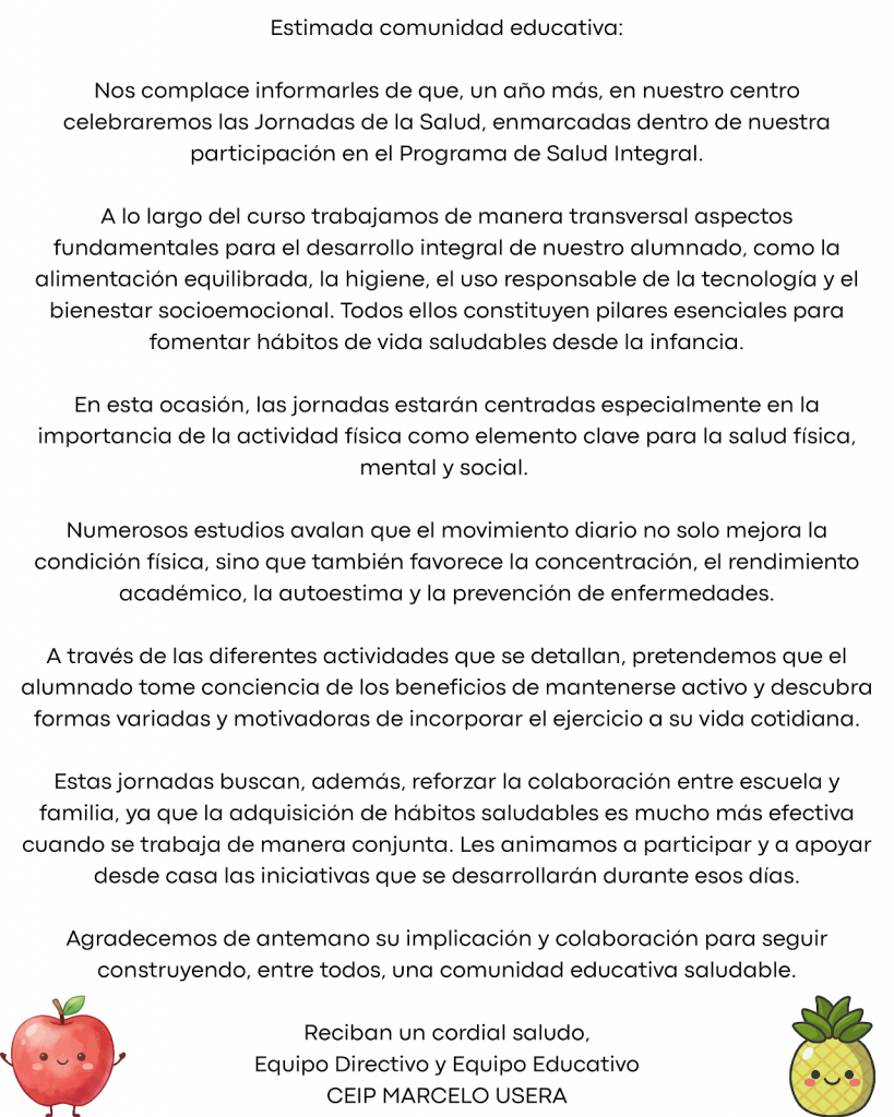 El CEIP Marcelo Usera participa en el Programa SI, Salud Integral. Una de las maravillosas partes que tiene este programa, es realizar “Las jornadas de la Salud”.