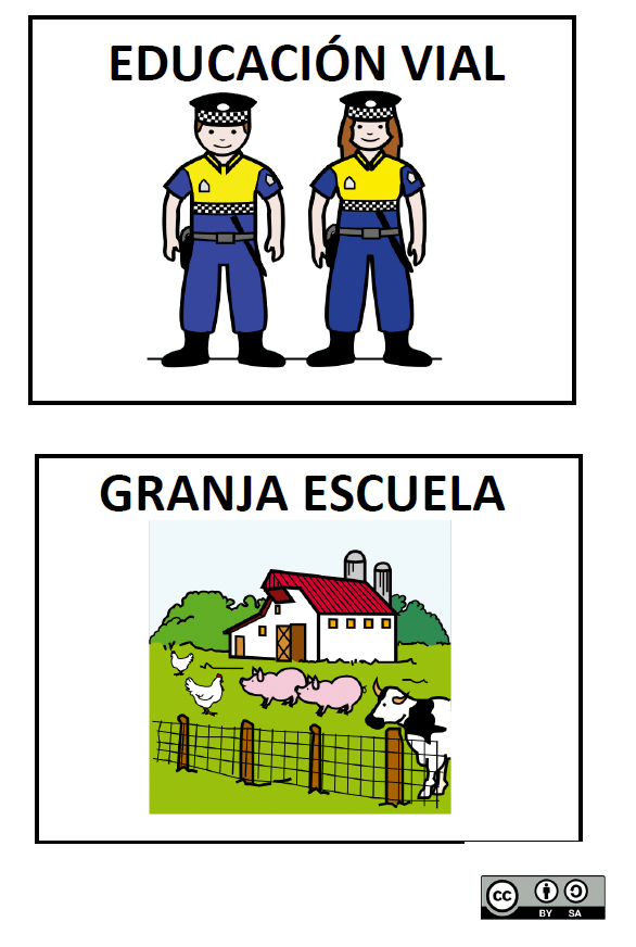 El tablero estará hecho con material DIbond y sobre él se pondrán (en soporte imán) los pictogramas correspondientes a las diferentes actividades y los cursos que participan.