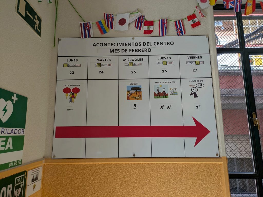 Hemos diseñado en el cole este tablero que hemos puesto en el Hall, que es una zona común por la que cada mañana pasa todo el alumnado del centro y los profes . El objetivo que perseguimos es informar de todos los eventos especiales que tendrán lugar en el colegio a lo largo de una semana.